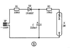 夜晚突遇停电,四周一片漆黑……。这时,只有你的一盏灯还亮着,当你在1min(分钟)内从容不迫地点亮蜡烛后,这盏灯才会慢慢熄灭。 一、工作原理 短时间应急灯的电路如图1所示。H是小功率冷阴极低压荧光灯。当电路接入电网后,220V交流市电经电阻器R1限流、晶体二极管VD半波整流后,将电容器C两端电压充至290V左 .. [