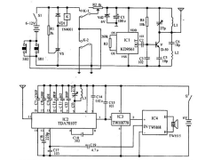 发射机部分:继电器K和可控硅VS用来控制发射机电路的电源。IC1组成警声信号电路。晶体管V及其外围元件组成射频振荡电路,发射报警信号。在等待状态时,开关S1接通,而SB1断开(即车头锁被锁住),K就处在释放状态,报警发射机不工作。当车头锁被打开时(即SB1接通),VS被触发导通,K吸合,接通发射机电源。SB1接通后, .. [