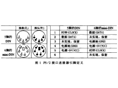 PS/26 针母插,外观为: 母插引脚定义 Pin Name Dir Description 1 DATA Key Data 2 n/c - Not connected 3 GND Gnd 4 VCC Power , +5 VDC 5 CLK Clock 6 n/c - Not connected PS/26 针公插,外观为: 公插引脚定义 Pin Name Dir Description 1 CLK Key CLOCK 2 GND GND 3 DATA Key DATA 4 NC - Not connected 5 VCC Power , +5 VDC 6 n/c - Not con ..