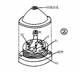 整个光控开关电路可组装在经过改造后的吊式电灯用挂线盒内,如图2所示。焊接时注意,各元件引脚均套上电工用绝缘套管,以免在使用过程中发生短路故障。RL引脚不要剪得过短,以装好后正好从原吊线出孔凸出为宜;挂线盒原有的接线桩直接用作X1、X2接线桩即成。此开关只要元器件质量保证,焊接无误,无须调试便可投入使用。