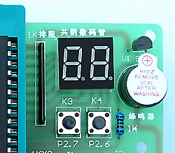 因为要显示两位不同的数字,所以必须用动态扫描的方法来实现,就是先个位显示1毫秒,再十位显示1毫秒,不断循环,这样只要扫描时间小于1/50秒,就会因为人眼的视觉残留效应,看到两位不同的数字稳定显示。