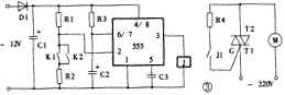 正常情况下,开关K1和K2处于断开状态,定时电路不工作,继电器J不带电,其接点常开,水泵电机不运转。一旦开关K1或K2中任一个闭合,555受低电平触发,定时器工作,输出端③输出高电平,继电器动作吸合,其接点闭合,触发可控硅导通,水泵电机转动。如果K1或K2长时间闭合,输出端将一直保持高电平;如果开关瞬间闭合后断开,输出端延时后将由高电平变为低电平。设置延时器的目的是防止水泵在保持压力期间的频繁开停。