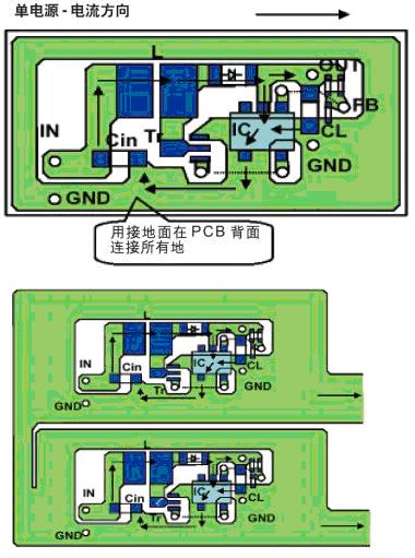 在设计印刷线路板时,设计工程师都会仔细思考铜线的走线方式和元器件的放置问题。如果没有充分考虑这两点,印刷线路板的效率、最大输出电流、输出纹波及其它特性都将会受到影响。产生这些影响的两个主要原因则是地线(GND、VSS)和电源线(+B、VCC、VDD)的连接,如果地线及电源线设计合理,电路将能正常地工作,获得较好的性能指标,否则会产生干扰、性能指标恶化等问题。本文就DC/DC转换器的设计,介绍一些通用的设计原则和地线连接方法。