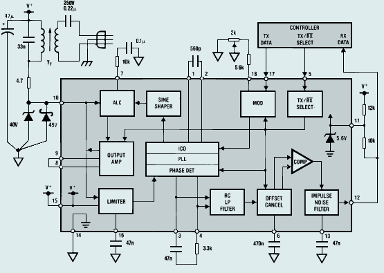 LM1893芯片是美国国家半导体公司生产的专用电力载波通信芯片,该芯片价格低廉,使用方便,精度高,可靠性好,可以实现任意编码方式的数字序列的半双工通信,其特性如下: