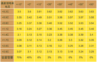 PowerSmart提供了各种标准配置文件,可用于配置各种流行的充电电池和电池组应用。图4和表1是不同温度,不同放电率的放电结束电压3D模型和PS501内部表格参数一个例子。