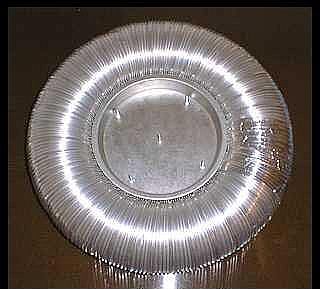 首先将平底金属盘底对底用螺丝固定如上图,接着将铝管盘成圈状,使其正好能卡在平底金属盘制作的骨架上,铝管的接口口处用铝箔封口,接线点定位在平底金属盘骨架中心,组装好成品,至此特斯拉线圈的所有重要部分已经完成。