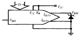 (3)一般DAC带有从电流输出脚和VREF之间的二极管, 所以这种接法不能进行负电压值的DA变化, 即IOUT1,IOUT2端不能接负电压。