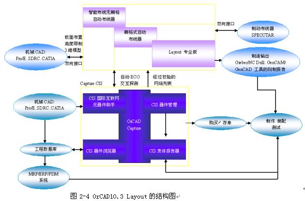 电路板;设计具有大模拟容量的电路板;具有高产量的工程部门。OrCAD10.3 Layout的结构图如图2-4所示。现简介如下: