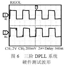 图6 给出了用FPGA 实现的三阶全数字锁相环的硬件电路测试波形。系统仿真与硬件测试结果都表明,该系统能够实现锁相功能。