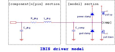 无论是驱动器模型还是接收器模型都是由两部分组成的:缓冲器结构模型([model] section)和封装因子([component]&[pin] section)。