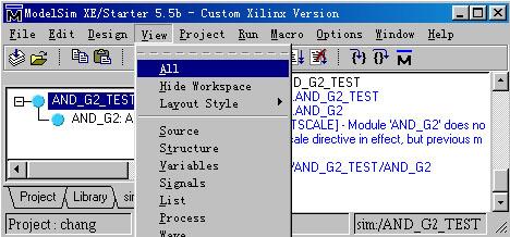 下面,用一个"与"运算的仿真应用例子来说明ModelSim XE仿真软件的操作过程。通过这个最简单的例子,可以基本掌握该软件的使用方法。