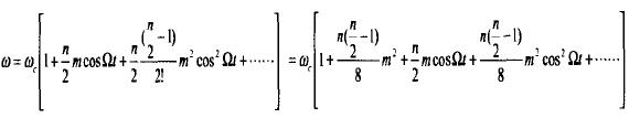是未受调制时的振荡角频率,即载波角频率。将式中mcosΩt作为变量,并在mcosΩt=0处展开为泰勒级数,得到: