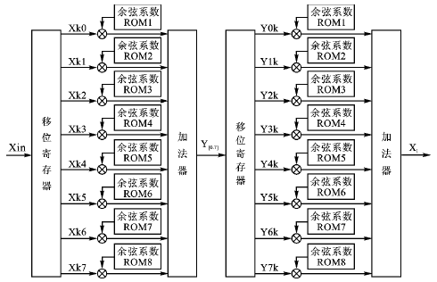 基于8×8矩阵的IDCT算法,在FPGA上按照图4所示的结构加以硬件实现。