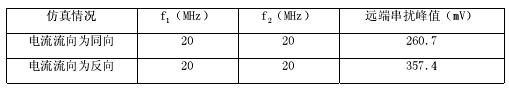 表 2电流流向不同时的峰值串扰