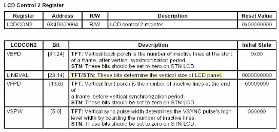 lcdcon2: LCD2_VBPD(0) | LCD2_VFPD(0) | LCD2_VSPW(0),