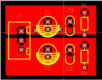 好了,为了说明这两个东东,我先搞几个零件做一个简单的四层板,等会一对比就更容易说明这两个设置的具体作用。图中我把第二层设为负片,第三层设为正片,以分别说明这两种情况下的效果。