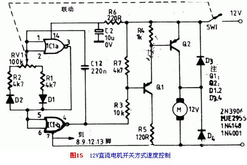 用开关方式或脉宽调制,可以获得非常好的速度控制性能。电路图如15所示。