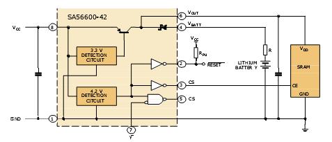 图12.内置SRAM数据保护电路的监控器件SA56600-42的典型应用