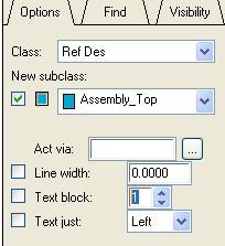 然后在右边控制面板options tab里line width添线的宽度和text block里选字体的大小。一定要注意Options 标签中的Class选择Ref Des,并且subclass要设置如下
