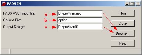a.要导入板子的ASCII文件路径,可以用Browse…浏览查找