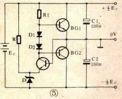 图5的电路比图4的电路有更好的对称性与稳定性。它用一个稳压管和一个三极管代换了图4中的R2,使反馈作用进一步加强。