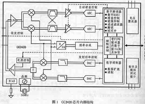 CC2420是首款符合zIGBee技术的高集成度工业用射频收发器件,其 MAC层和 PHY 层协议符合802.15.4 规范,工作于免授权的 2.4GHz 频段。利用此芯片开发的短距离射频传输系统成本低、功耗小,适于电池长期供电。具有硬件加密、安全可靠、组网灵活、抗毁性强等特点,为家庭自动控制、工业监控、传感网络、消费电子、智能玩具等提供了理想的解决方案。