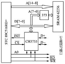 系统采用增强型8051内核的单片机STC89C516RD+作为中央处理芯片,选用南京沁恒电子公司的CH375S作为USB主机控制芯片。