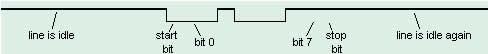 RS-232使用异步通讯协议。也就是说数据的传输没有时钟信号。接收端必须有某种方式,使之与接收数据同步。
