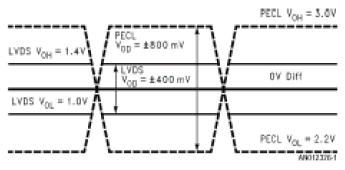 下图为LVDS与PECL(光收发器使用的电平)电平变化。