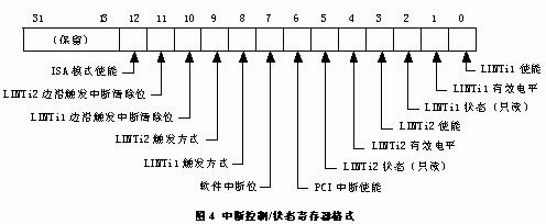 9052的INTCSR格式如图4所示,除保留位和LINTi状态位为只读外,其余位均为读/写位。