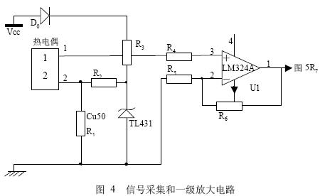 热电偶二线制变送器电路和热电阻二线制变送器主要区别在于信号采集和非线性修正部分, 下面我们就这两部分别作介绍。