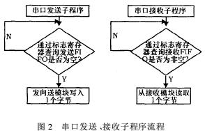 Picoblaze通过对标志寄存器的查询,根据FIFO的状态进行操作。串口发送和接收子程序流程见图2。