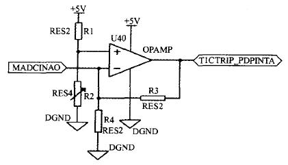 经过比较器的信号连接到采样保持放大器的反相输入端。调节可变电阻,A/D转换单元的参考电压输入端ADCREFP和ADCREFM 引脚获得0—3.3V的可变电压,从而把检测到的信号偏置到模/数转换内核正常的输入范围,以实现对DSP的保护。