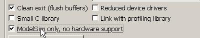 4 专门生成针对simulation的代码。也就是在ModelSim only,no hardware support前打勾。其实这个project比较简单,直接仿真在硬件上实际运行的代码也无妨(也就是无需在ModelSim only,no hardware support前打勾。)