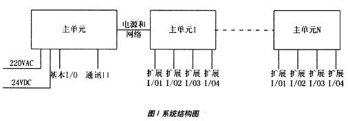 系统结构如图1所示,系统采用220VAC或24VDC供电,主单元功耗3.3W ,每个从单元功耗2.2W ,最多可以扩展8个从单元。