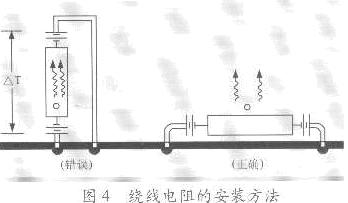 标准的精密线绕电阻使用的导线材料称为“Alloy180”(77%的铜,23%的镍) ,当把它接到电阻线上时将产生42μV/℃的热电势。如果两个端点保持在同一温度下,就不会有静态误差产生。但是如果电阻垂直安装,电阻的顶端和底端就不大可能处在同样的温度下,由于电阻的耗散功率(由信号电压引起的),热量会上升,并产生一个误差电压。镀锡的铜引线(通常是专用工艺得到的),能把热电势降到2.5μV/℃,所以对于精密电路来讲这是一个很值得的选择。