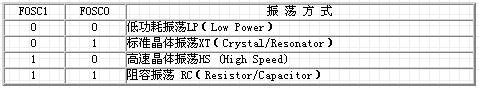 PIC单片机有四种振荡方式可供选择,振荡方式经配置寄存器CONFIG的F0SC1,F0SC0位加以选择,并在EPROM编程时写入。