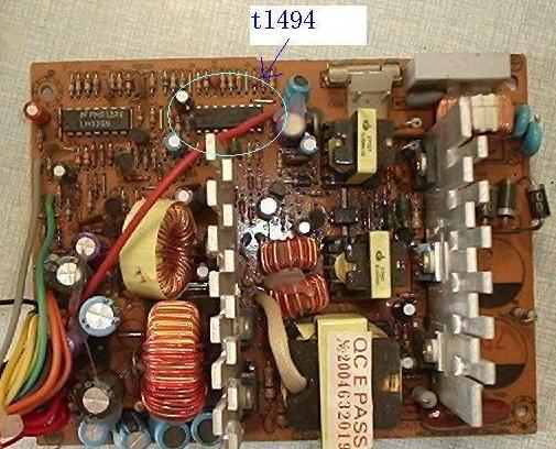 用TL494块的长城ATX250W电源进行改装,这块板上,TL494 2脚是基准电压脚,1脚为取样电压脚,1脚作用是将+5V通过两个电阻分压取样,输入TL494与1脚的基准电压比较,控制输出脉宽,从而控制输出电压。