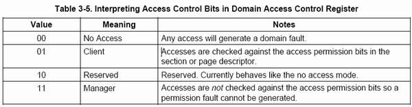 00:当前级别下,该内存区域不允许被访问,任何的访问都会引起一个domain fault