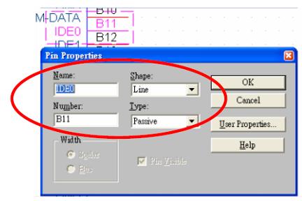 在同一颗 Part 中其 Pin name 必须是唯一且不可重复的.如 IDE0,IDE1……