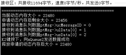 我们再测试,把申请的内存换成ptMsg = (MSG_T *)pvPortMalloc(32);这样的输出,必然和上面一样: